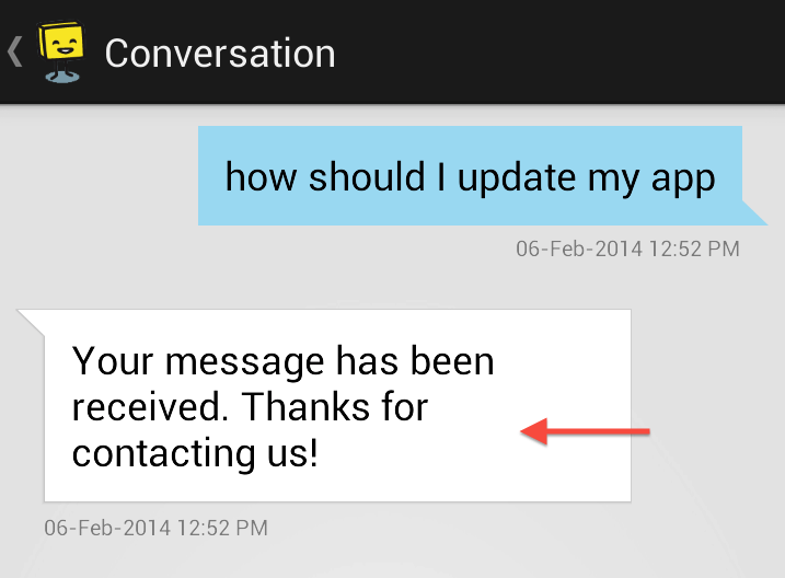 hs__conversation_started_message | Text for auto-response message when user starts a new conversation ![]() | Your message has been received. Thanks for contacting us! |