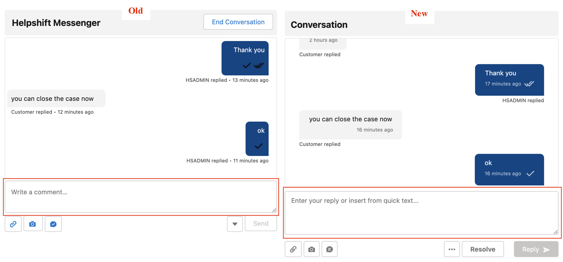 - Resolve button position similar to Helpshift agent dashboard.