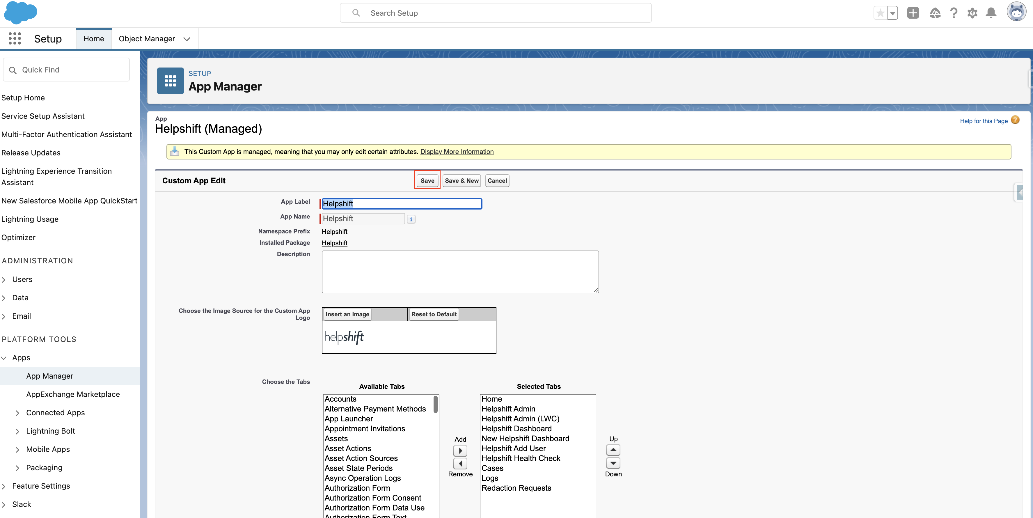 - Navigate to Setup and search for App Manager.