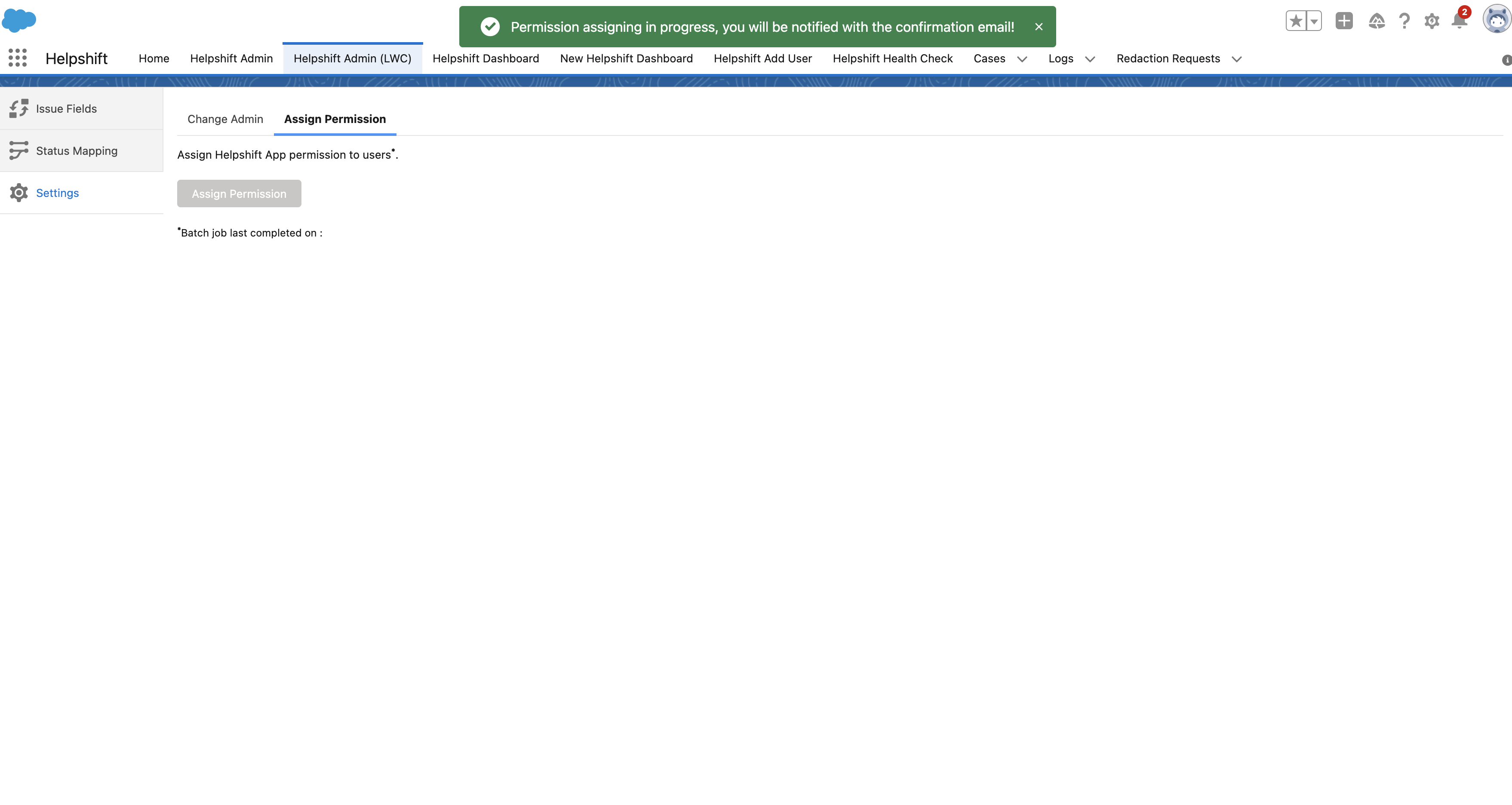 - On click of the Assign Permission button, you will be notified via email after the job completion