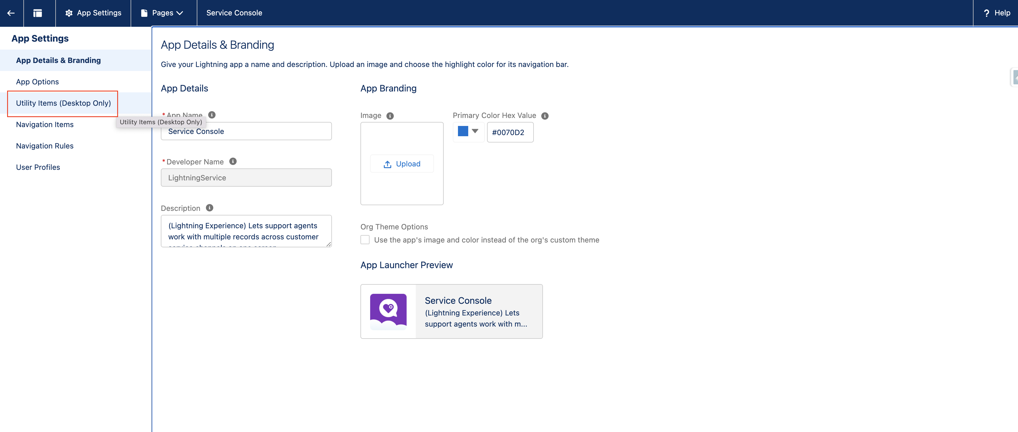 - In the editor, click on Utility Items (Desktop Only) as shown below :