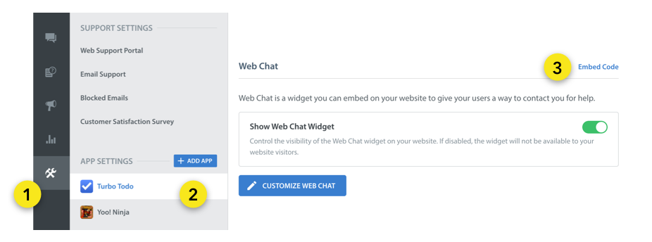 You can find a prepared embed code for your App at Settings > App > Web Chat.